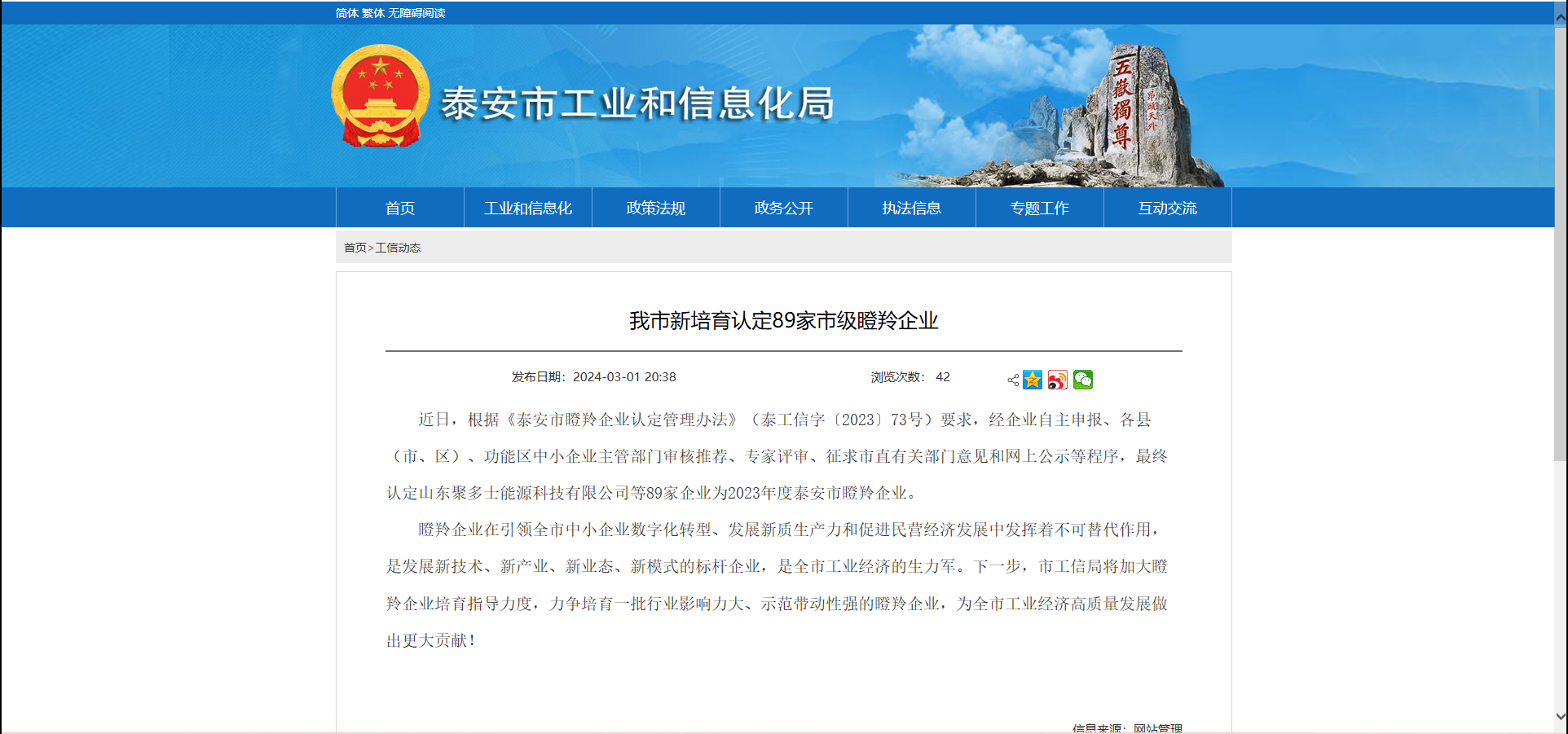 近日,山东省工信厅公布泰安市瞪羚企业拟定名单,开体育app官网入口成功入选!